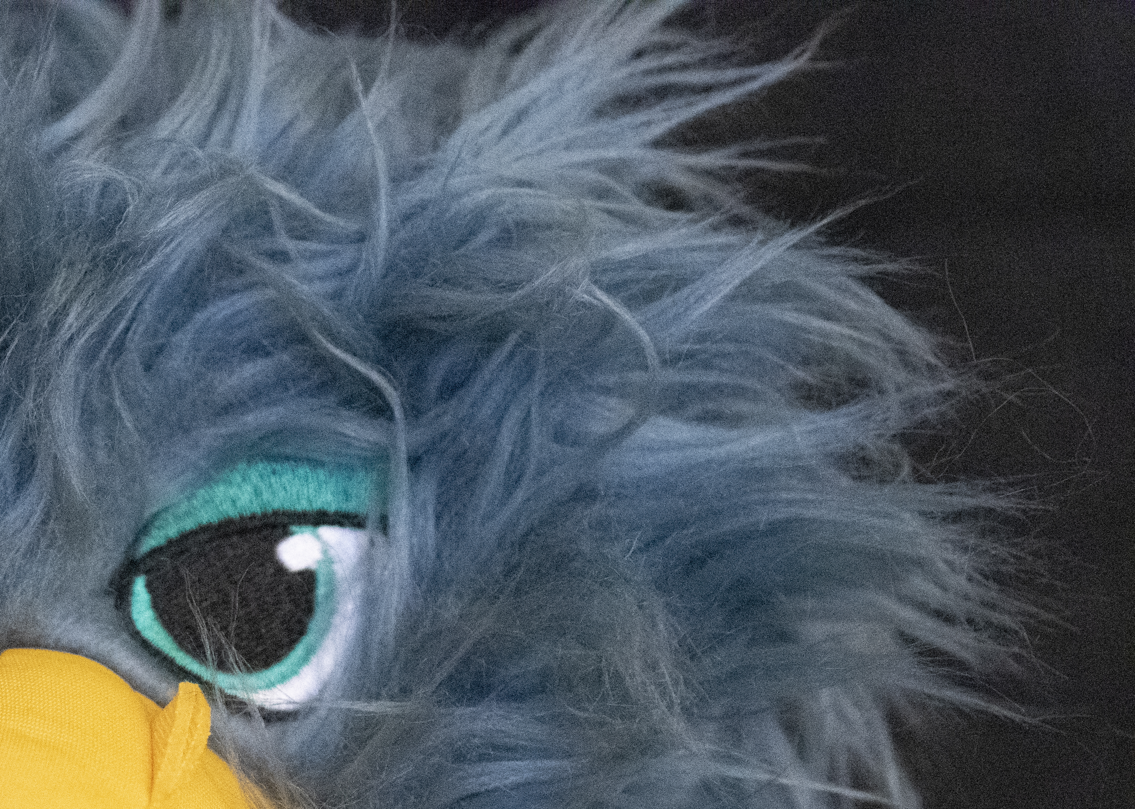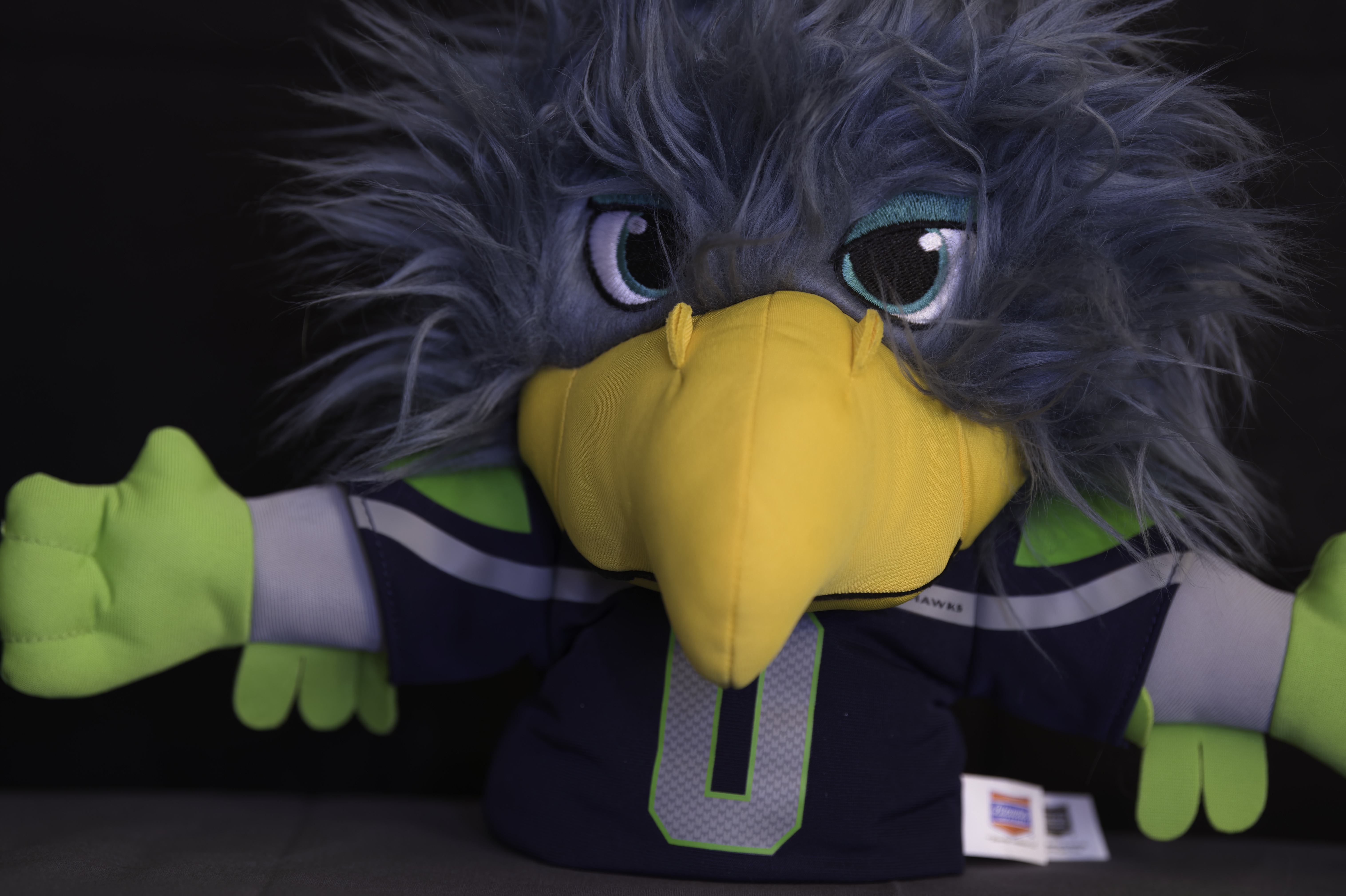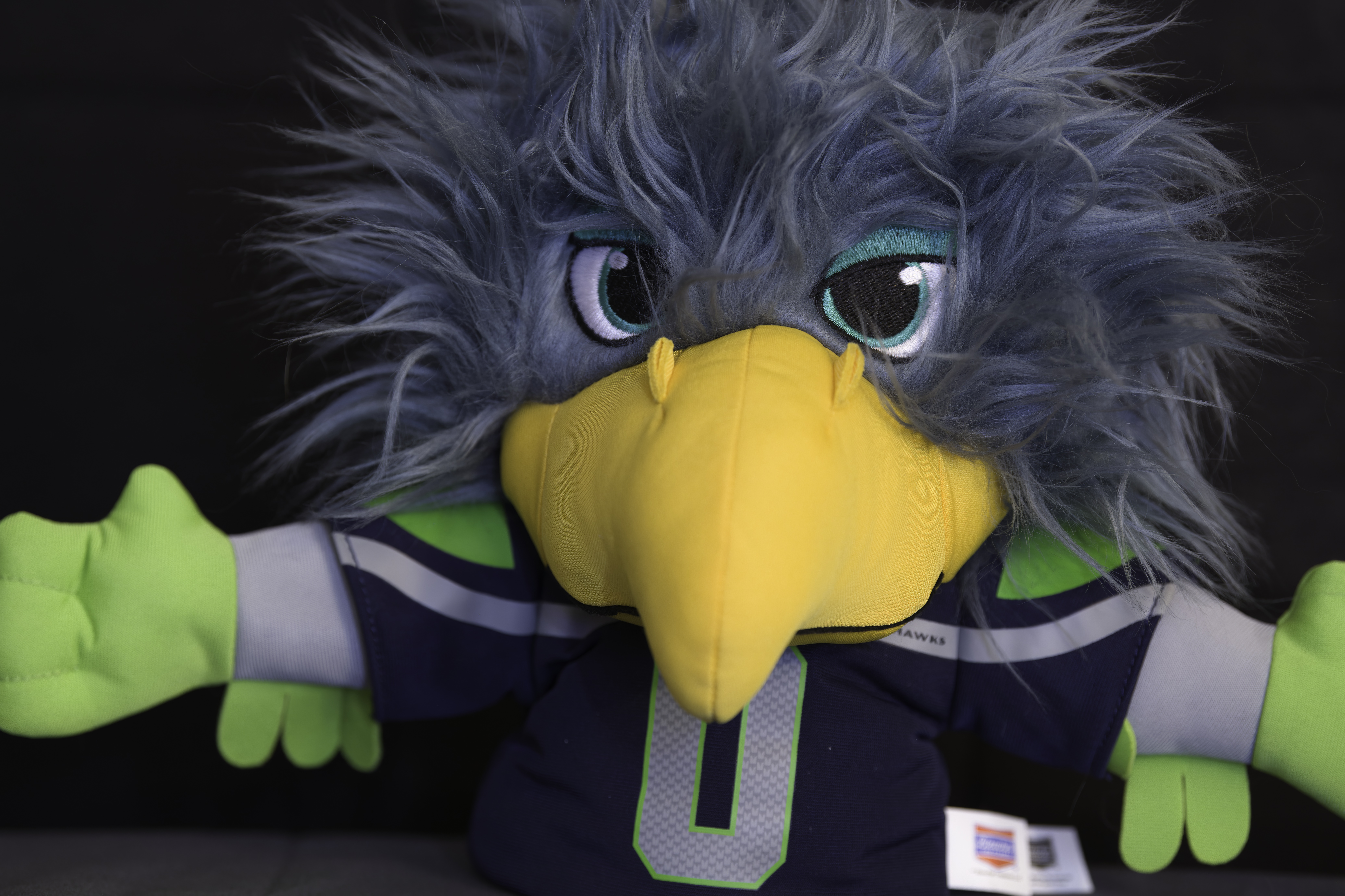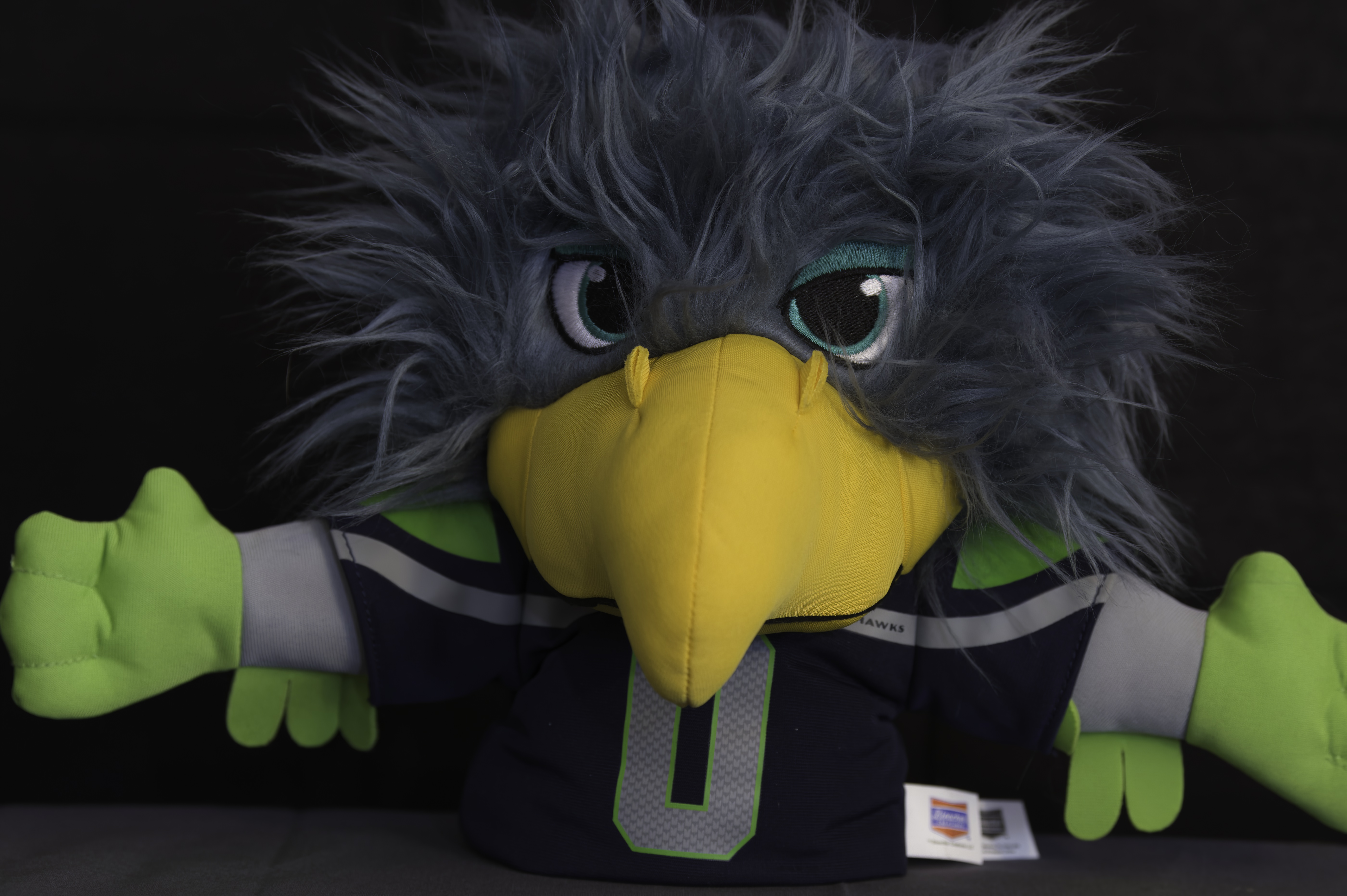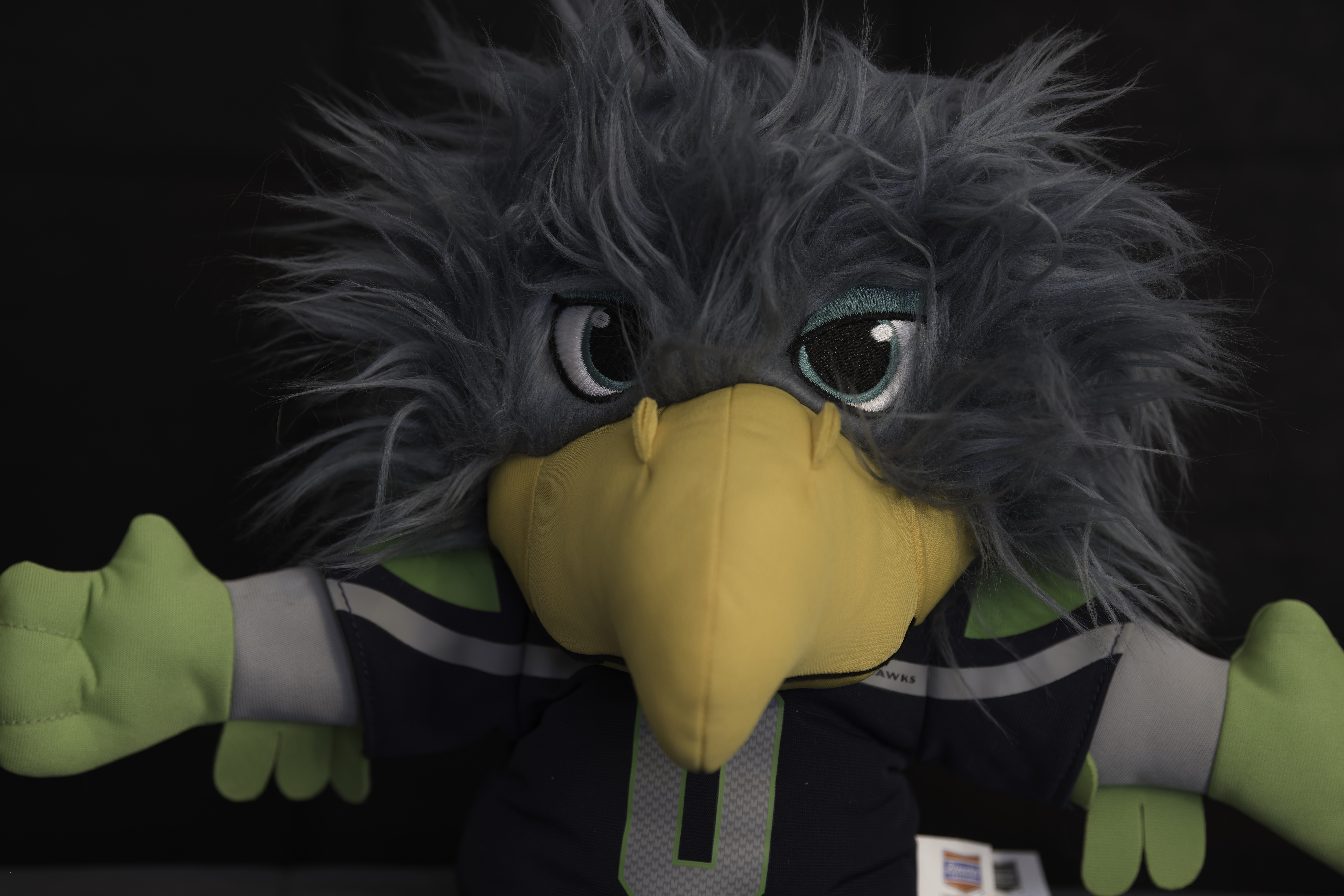 The subject for this testing was a hand puppet of Blitz, the Seattle Seahawks mascot, against a black background with a mid grey base.
